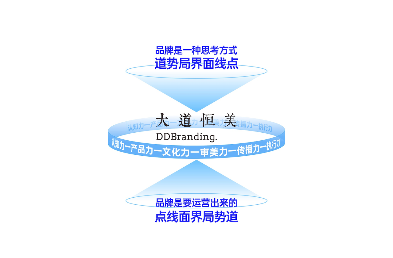 ⼤道恒美所倡导的 「⼤品牌战略」体系认为品牌建设是⼀项战略性、全局性、系统性工程,以认知构建、以创新驱动,以战略定义,以文化智造,以审美引领,用整合传播。