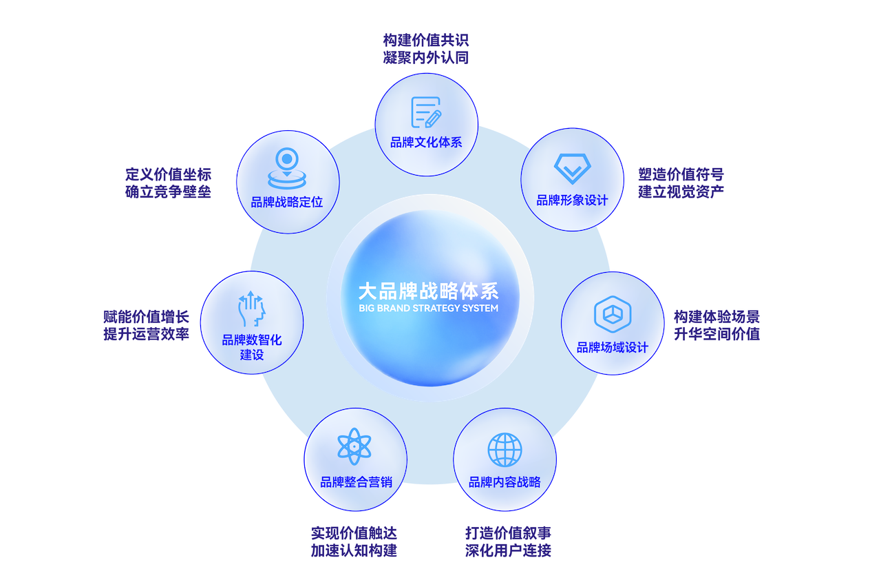我们以大品牌战略+AI数智化品牌资产建设逻辑为理念,将前瞻性品牌定位与品牌战略为灵魂,通过策略策划、创意设计、整合传播与全球资源的核心引擎,构建了“战略-文化-设计-传播-运营”全链路服务体系,贯穿品牌全生命周期服务。我们旨在为客户构筑的,不仅是市场的竞争力,更是文化生命力与可持续发展根基。