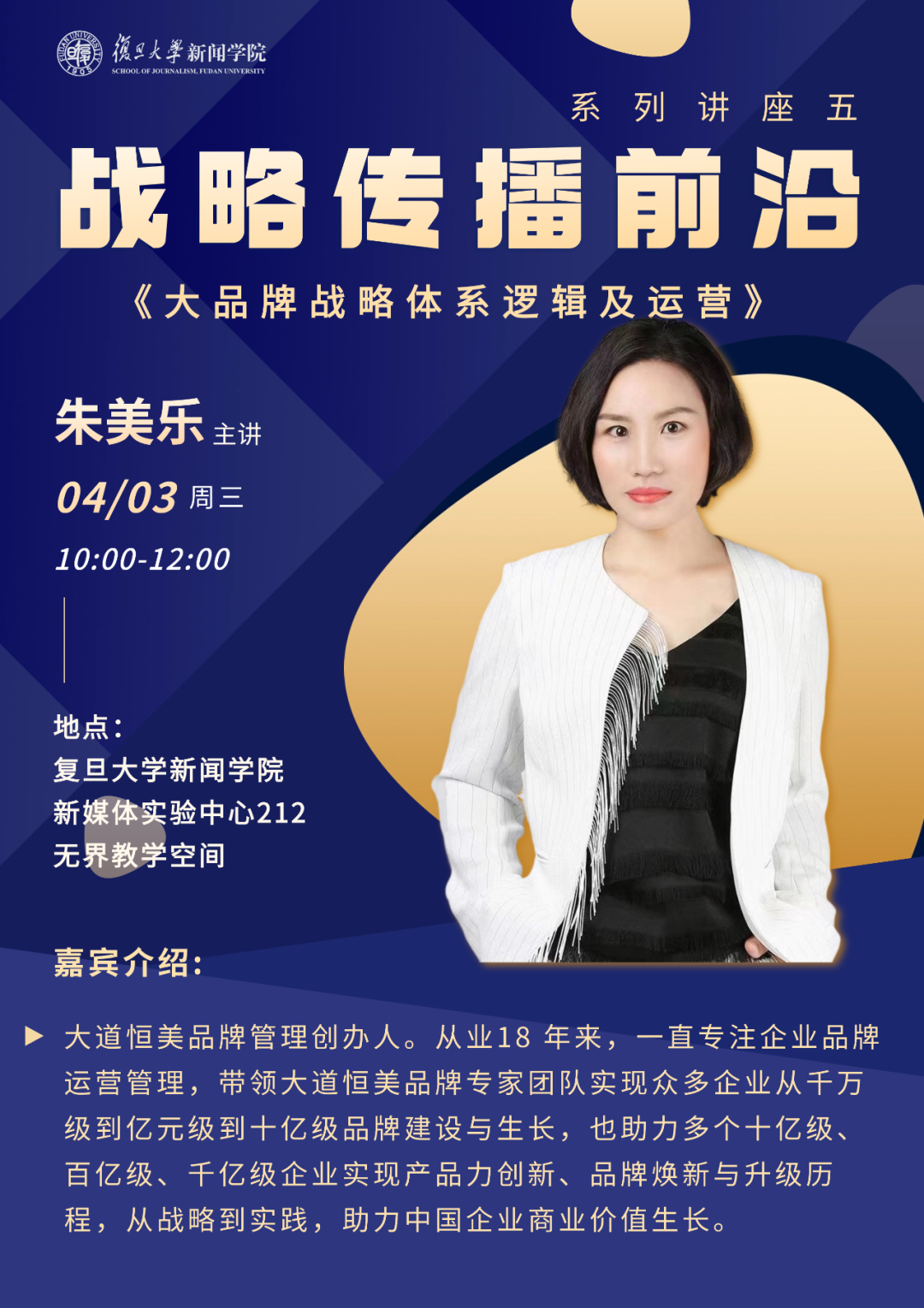 2024年4月,走进复旦大学,为新闻学院研究生带来主题为《大品牌战略体系逻辑及运营分享》的专题课程