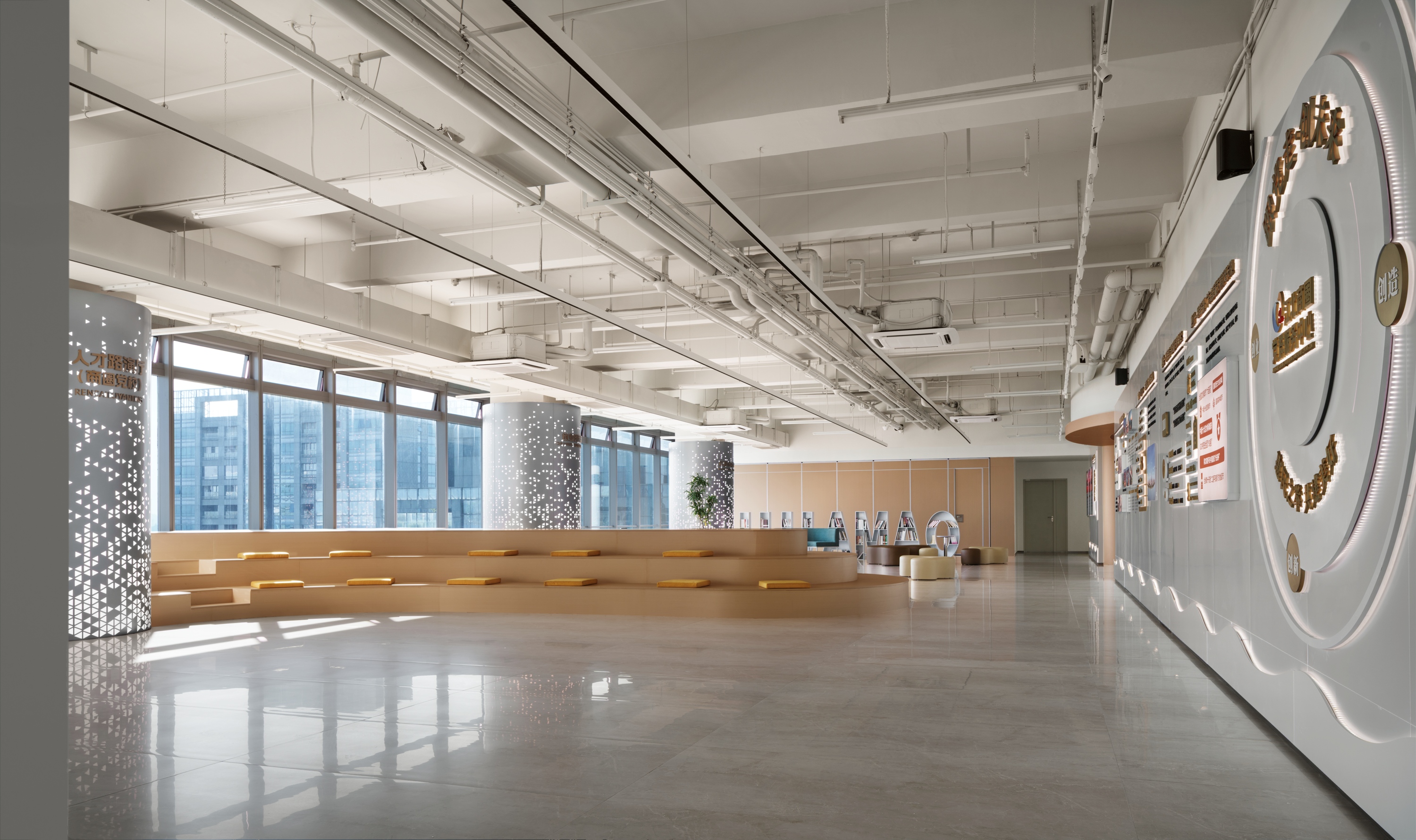 招商银行总部大厦:我们将金融专业质感与人文关怀深度融合,通过品牌文化设计赋能空间内涵、视觉创意强化品牌记忆,将总部大厦打造为招行品牌文化的核心载体,提升了员工归属感与品牌认同感。
